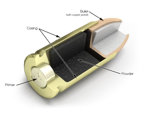 Outside of the firearm world, the cartridge is wrongfully called the "bullet". This is critical to understand because the bullet is actually part of the cartridge.There are many forms of cartridges, but most of the terms apply interchangeably. There are some terms that are dropped if features are not found in a specific cartridge.